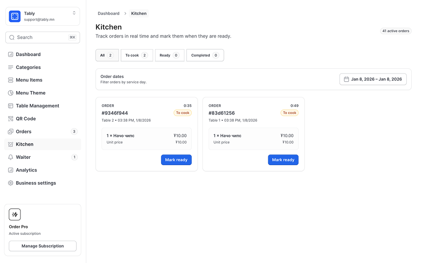 Manage kitchen, waiter flow, tables, and analytics in one place—so your team stays fast and coordinated.